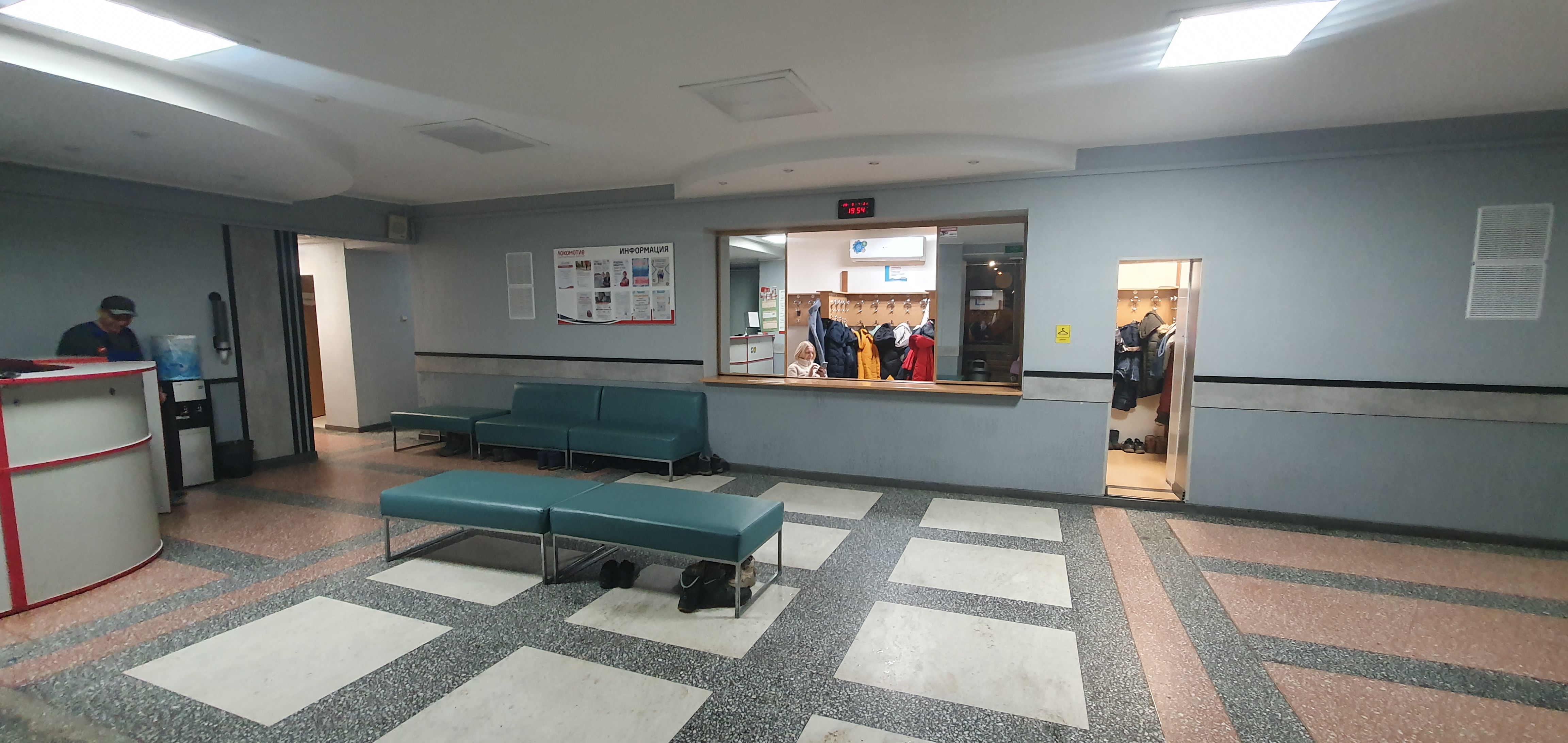 Женская раздевалка находится на втором этаже, слева по коридору относительно гардероба.